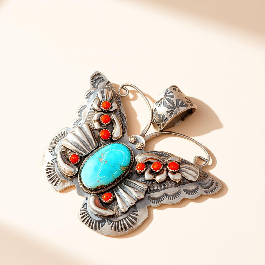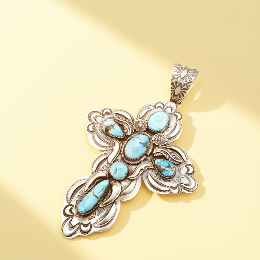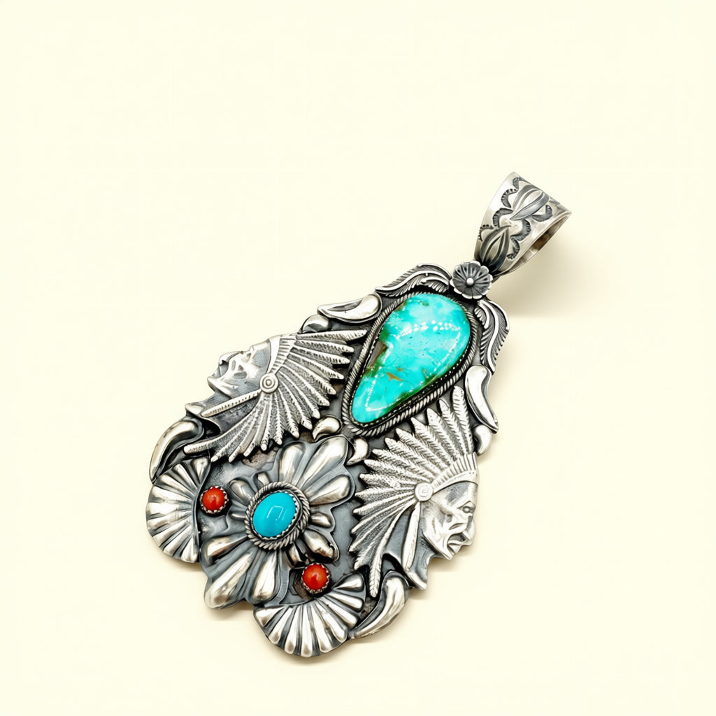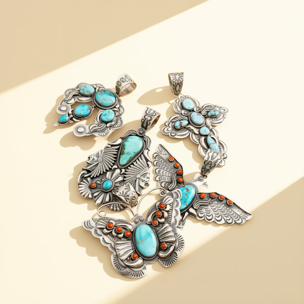 Handcrafted by Richard Yazza, this collection of Power Pendants is rendered in sterling silver and set with turquoise.