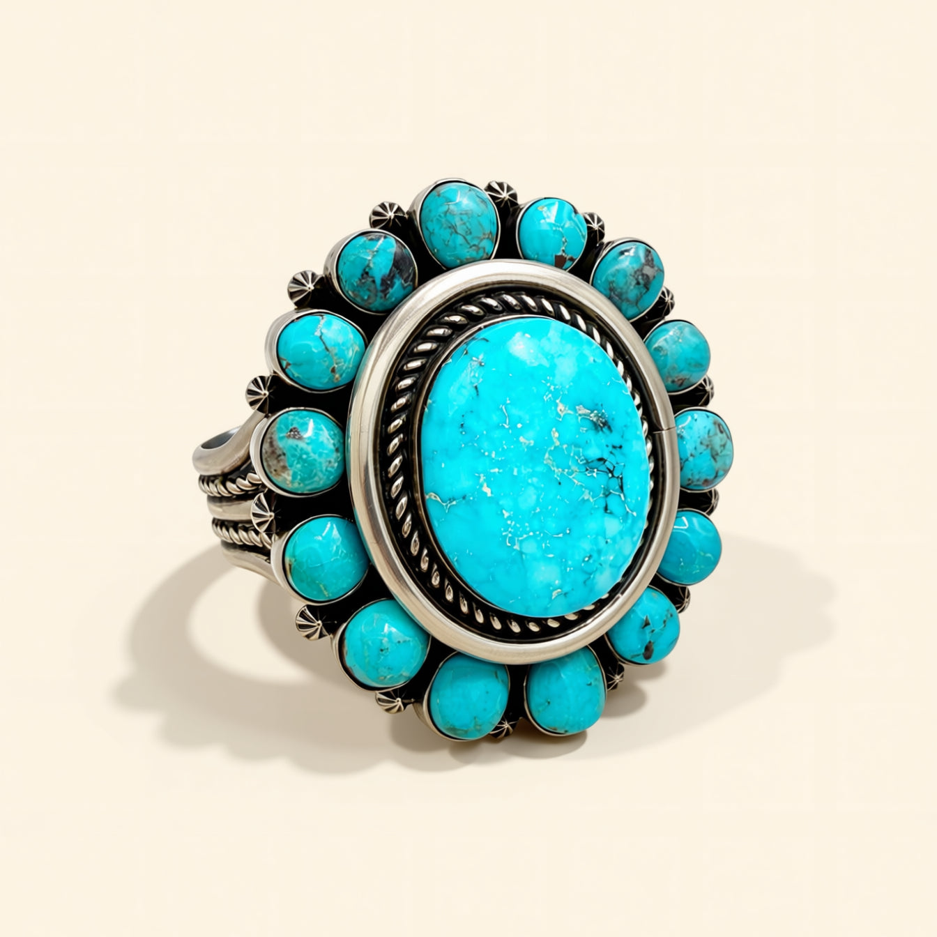 Blue Ridge speaks to open sky and wide horizons, and this set carries that expansive energy from collarbone to wrist. Worn together, it creates a commanding presence at gallery openings, milestone celebrations, or any moment that calls for unforgettable turquoise.