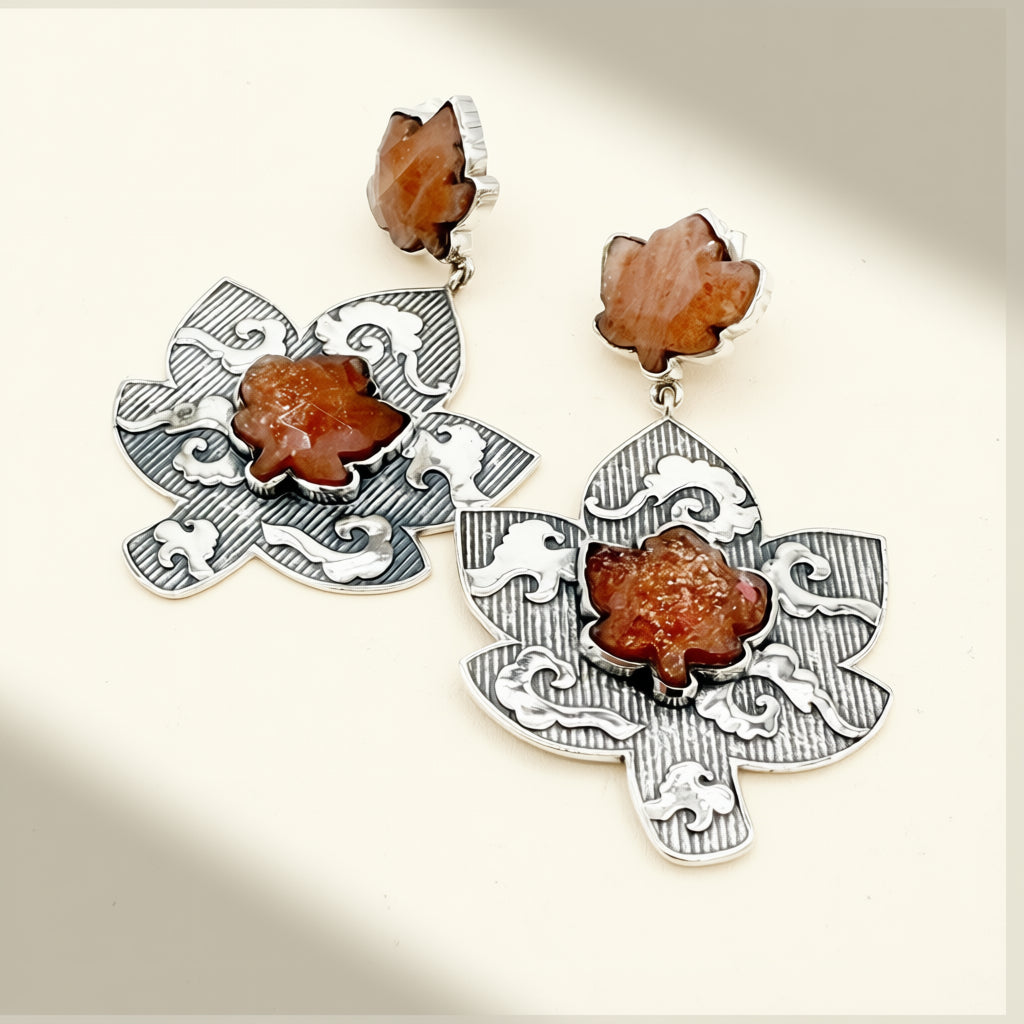 Sunstone Leaf Tornado Statement Earrings