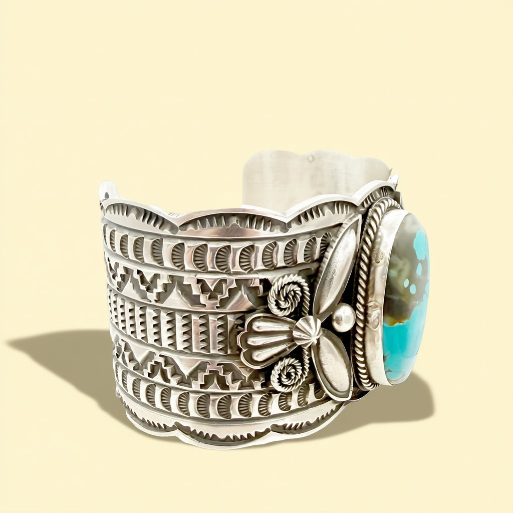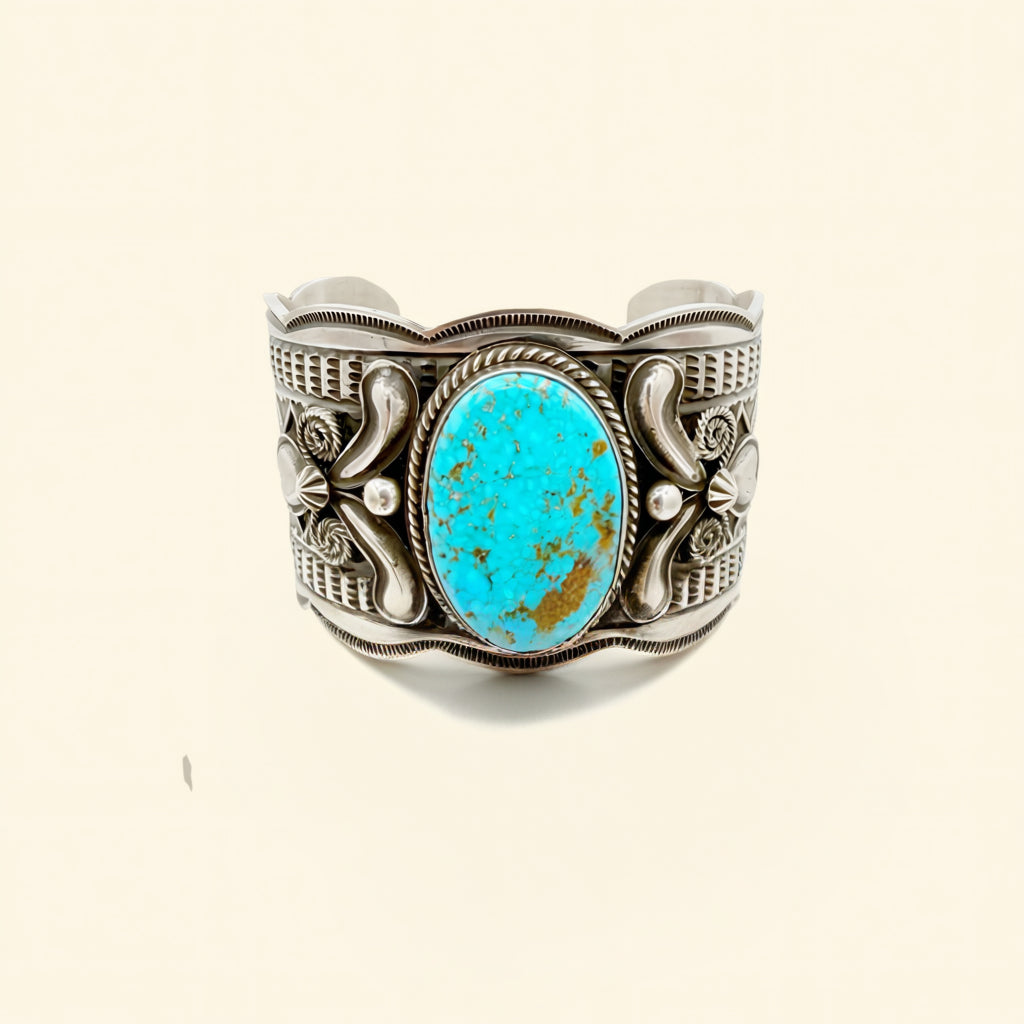 Strong and sculptural on the wrist, these turquoise cuff bracelets offer bold scale with comfortable wear. Whether worn individually or as a pair, they bring striking color and classic Southwestern character to a statement jewelry look.